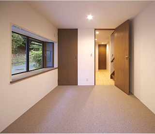 構造的に弱い部分の窓を壁に変え、構造強度に余裕がある部分に窓を新しく設けました、塀を無くし開放的なアプローチに